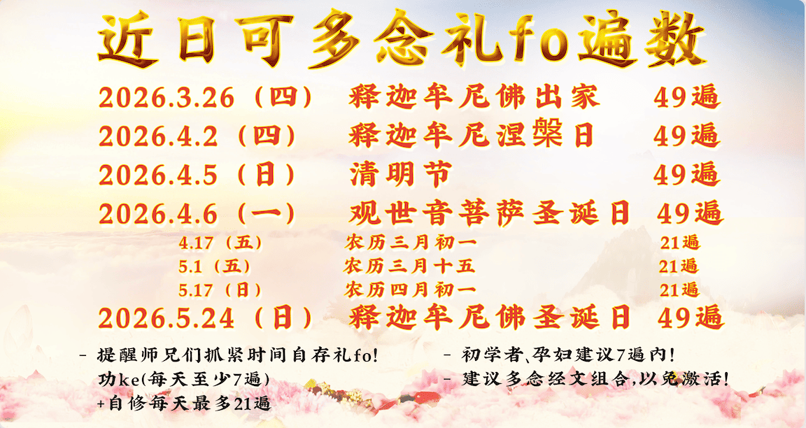 近日大日子可念礼佛数量